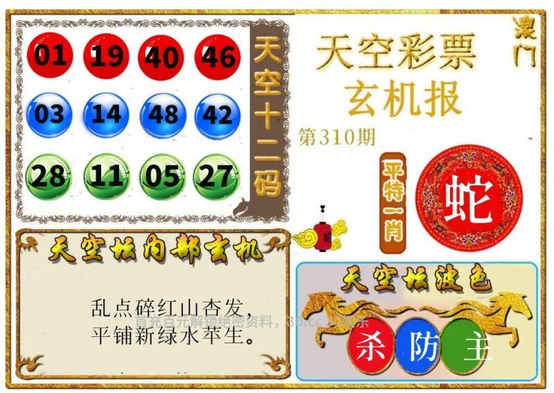 | 310期:精解黄金特码诗 解六肖:羊猴蛇虎兔狗 解五肖:羊猴蛇虎兔 |